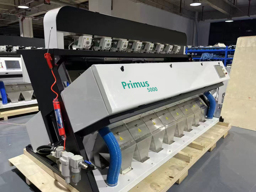 The Primus Color Sorter is a high-precision machine used to sort grains, seeds, or plastics by detecting color differences with advanced cameras and sensors. It improves product quality and efficiency, commonly used in agriculture and industrial processing.